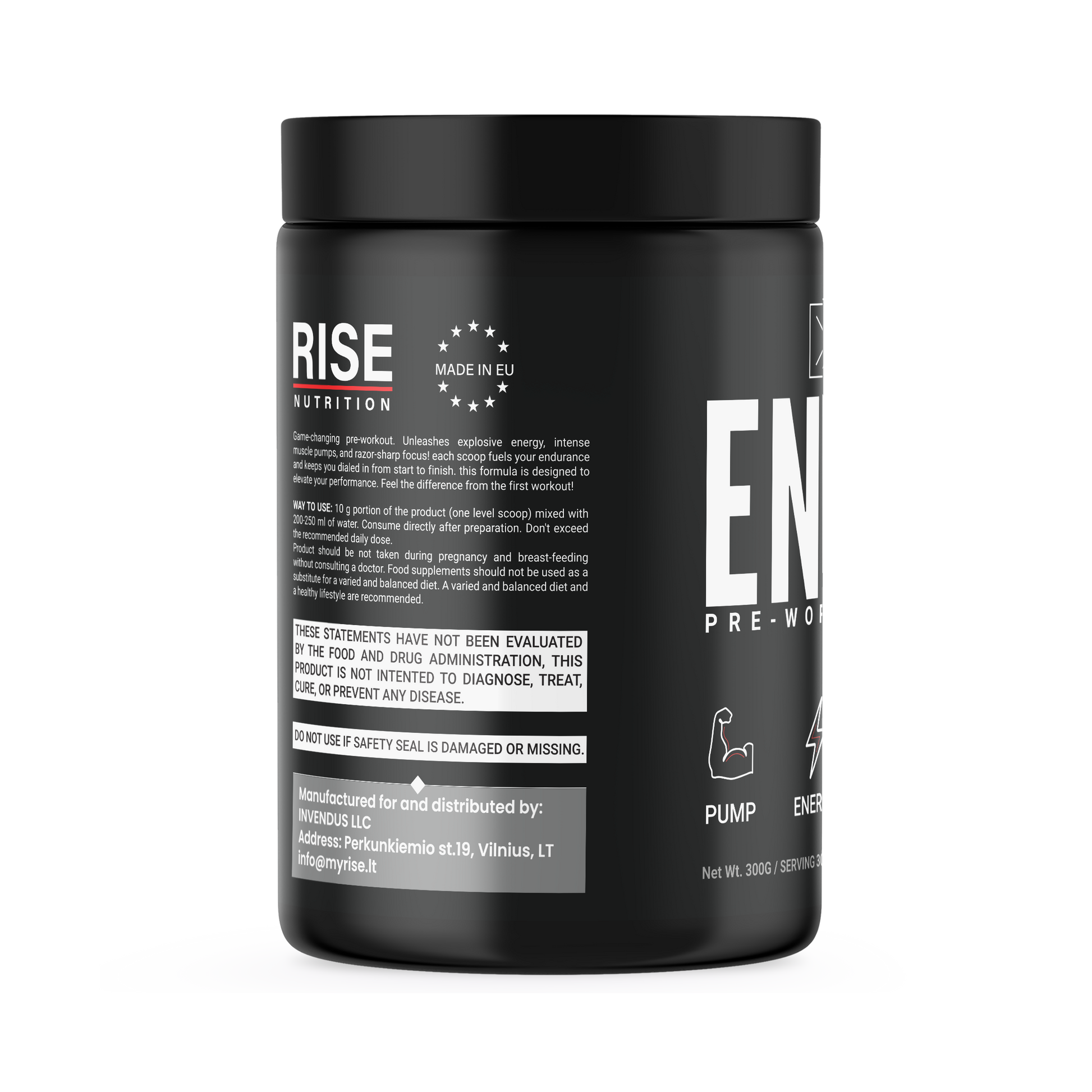 Trūksta energijos ar motyvacijos treniruotėms? Atraskite savo potencialą su RISE ENERGY. Mūsų kruopščiai subalansuota formulė padeda palaikyti energijos lygį ir susikaupimą, kad treniruotėse jaustumėtės užtikrintai. Šis produktas yra specialiai sukurtas fiziškai aktyviems asmenims. Jo sudėtyje esančios medžiagos tradiciškai naudojamos energijos lygio palaikymui, koncentracijos skatinimui ir treniruočių kokybės gerinimui. Kiekviena porcija aprūpina organizmą kruopščiai atrinktais ingredientais, kurie palaiko jūsų ištvermę visos treniruotės metu.