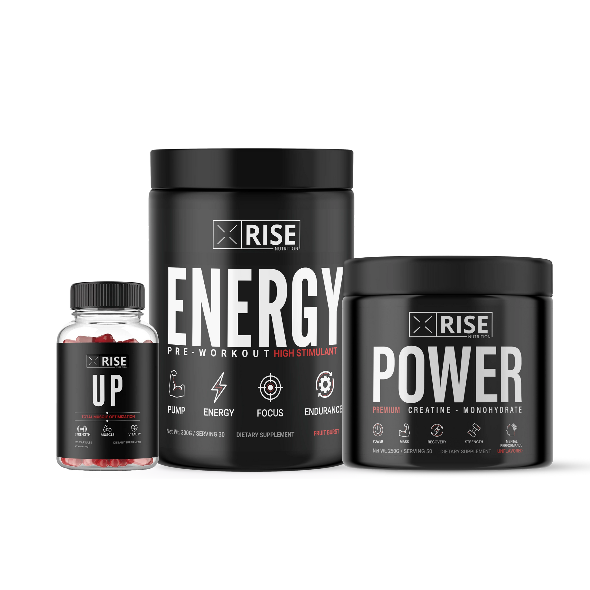 RISE Premium 3D Rinkinys – tai unikalus trijų papildų derinys, skirtas palaikyti energijos lygį, fizinę ištvermę ir bendrą organizmo funkcionalumą treniruočių metu. Šio rinkinio sudėtis parinkta taip, kad padėtų pasiekti maksimalią naudą aktyvaus gyvenimo būdo ar sporto metu.